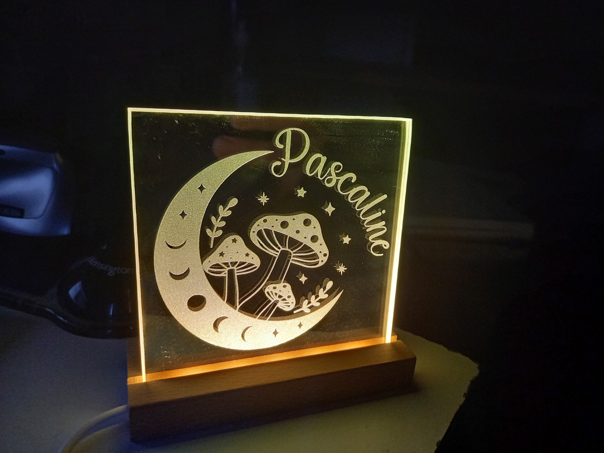 Envie d’un objet stylé et unique ? Craque pour notre miroir lumineux personnalisé ! Grâce à la gravure sur mesure, tu crées facilement un accessoire déco à ton image : un prénom, une phrase, un petit motif… Laisse la lumière illuminer ta création !